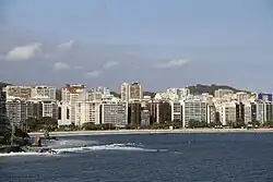 Niterói (Brazilian Portuguese:[niteˈɾɔj]; English: /nɪtəˈrɔɪ/nit-ə-ROI) is a municipality in the state of Rio de Janeiro, in the southeast region of Brazil. It lies across Guanabara Bay, facing the city of Rio de Janeiro and forming part of the Rio de Janeiro Metropolitan Area.[3] It was the capital of Rio de Janeiro, as marked by its golden mural crown, from 1834 to 1894 and again from 1903 to 1975. It has an estimated population of 515,317 inhabitants (2020) and an area of 129.375 km2 (49.952 sq mi), making it the fifth most populous city in the state. It has the highest Human Development Index in the state and the seventh highest among Brazil's municipalities in 2010.[4] Individually, it is the municipality with the second highest average monthly household income per capita in Brazil[5] and appears in 13th place among the municipalities of the country according to social indicators related to education.[6] The city has the nicknames of Cidade Sorriso (Smile City).[7]