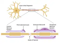 - ^ a b c d Salzer J. L. (1997). "Clustering sodium channels at the node of Ranvier: close encounters of the axon-glia kind". Neuron. 18 (6): 843–846. doi:10.1016/S0896-6273(00)80323-2. PMID 9208851. S2CID 6743084.