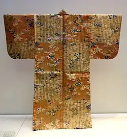 For centuries, in accordance with the vision of Zeami, Noh costumes emulated the clothing that the characters would genuinely wear, such as the formal robes for a courtier and the street clothing for a peasant or commoner. But in the late sixteenth century, the costumes became stylized with certain symbolic and stylistic conventions. During the Edo (Tokugawa) period, the elaborate robes given to actors by noblemen and samurai in the Muromachi period were developed as costumes.[28]