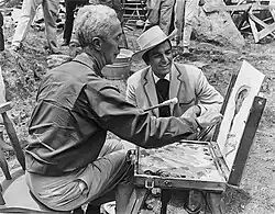 In 1966, Rockwell was invited to Hollywood to paint portraits of the stars of the film Stagecoach, and also found himself appearing as an extra in the film, playing a "mangy old gambler".[40]