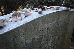 In 1953, the Rockwell family moved to Stockbridge, Massachusetts, so that his wife could be treated at the Austen Riggs Center, a psychiatric hospital at 25 Main Street, close to where Rockwell set up his studio.[52] Rockwell also received psychiatric treatment, seeing the analyst Erik Erikson, who was on staff at Riggs. Erikson told biographer Laura Claridge that Rockwell painted his happiness, but did not live it.[53] On August 25, 1959, Mary died unexpectedly of a heart attack.[54]