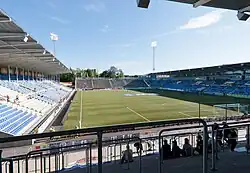 - Motorcycle speedway takes place at the Norrköping Motorstadion, the stadium hosts the speedway team Vargarna.[20] The team participate in the Swedish Speedway Team Championship and are six times champions of Sweden, they raced at one former venue; the old Norrköping Motorstadion in Dagsbergsfältet (the site of the modern day Medley Centralbadet) from 1948 to 1963. The Dagsbergsfältet track staged a qualifying round of the Speedway World Championship in 1954.[21]