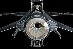 The X-15 had a thick wedge tail to enable it to fly in a steady manner at hypersonic speeds.[16] This produced a significant amount of base drag at lower speeds;[16] the blunt end at the rear of the X-15 could produce as much drag as an entire F-104 Starfighter.[16]
