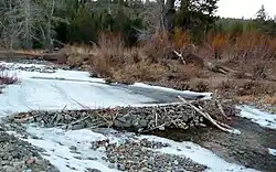 Beavers use rocks for their dams when mud and branches are less available as seen on Bear Creek, a tributary to the Truckee River, in Alpine Meadows, California.