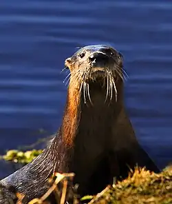 Although commonly called a "river otter", the North American river otter is found in a wide variety of aquatic habitats, both freshwater and coastal marine, including lakes, rivers, inland wetlands, coastal shorelines, marshes, and estuaries. It can tolerate a great range of temperature and elevations. Aquatic life ties North American river otters almost exclusively to permanent watersheds.[17] Their main requirements are a steady food supply and easy access to a body of water. However, it is sensitive to pollution, and will disappear from tainted areas.[23]