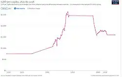 Industry was the favored sector in North Korea. Industrial production returned to pre-war levels by 1957. In 1959, relations with Japan had improved somewhat, and North Korea began allowing the repatriation of Japanese citizens in the country. The same year, North Korea revalued the North Korean won, which held greater value than its South Korean counterpart. Until the 1960s, economic growth was higher than in South Korea, and North Korean GDP per capita was equal to that of its southern neighbor as late as 1976.[125] However, by the 1980s, the economy had begun to stagnate; it started its long decline in 1987 and almost completely collapsed after the dissolution of the Soviet Union in 1991, when all Soviet aid was suddenly halted.[126]
