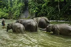 - Tangkahan is a tourist site situated at the edge of the Gunung Leuser national park, around 20 km due north from Bukit Lawang, The main tourist draw at Tangkahan is the presence of Sumatran elephant.[54]