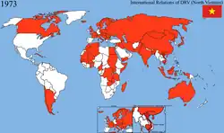 1. ^ From the start of the First Indochina War until French defeat in 1954, the DRV lost control over major cities but maintained control of scattered rural areas, then taking the role of maquis). DRV during this time was considered a rump state, but it did not cease to exist. Communist China and the Soviet Union recognized the DRV in 1950.
