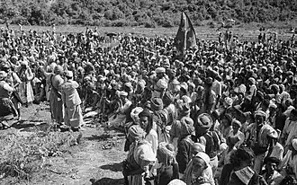 Al-Badr and his personal servants managed to escape through a door in the garden wall in the back of the palace. Because of the curfew, they had to avoid the main streets. They decided to escape individually and meet in the village of Gabi al-Kaflir, where they were reunited after a 45-minute walk.[25] Sallal had to defeat a fellow revolutionary, Al-Baidani, an intellectual who had a doctorate degree, who did not share Nasser's vision. On September 28, there were radio broadcasts announcing al-Badr's death.[3] Sallal gathered tribesmen in San'a and proclaimed: "The corrupt monarchy which ruled for a thousand years was a disgrace to the Arab nation and to all humanity. Anyone who tries to restore it is an enemy of God and man!"[26] By then, he had learned that al-Badr was still alive and had made his way to Saudi Arabia.[26]