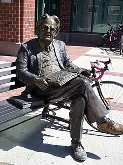 Northrop Frye School in Moncton was named in his honour. A statue shows Frye sitting on a park bench outside the entrance to the Moncton Public Library.[24] Another casting of the statue and bench by artists Darren Byers and Fred Harrison sits at Victoria College at the University of Toronto.[25]