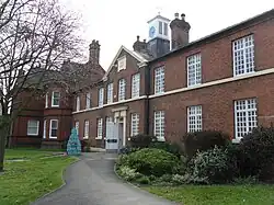 Northwich Urban District Council took over the former Northwich Grammar School buildings (built 1878) on Church Road after the school relocated in 1908.[4] The building was converted to become the council's offices and meeting place and renamed the Council House, opening in 1913.[34][35] The urban district was enlarged in 1936 by the addition of parts of Winnington, Lostock Gralam, Barnton, Leftwich and Rudheath; then again in 1955, when parts of Davenham, Hartford, Rudheath and Whatcroft were added.[36] The urban district council was granted a coat of arms in 1962, which features the Latin motto "Sal est Vita", meaning Salt is Life.[37]