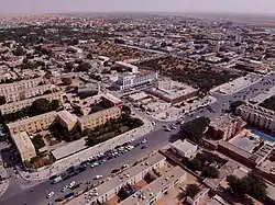 From the top to bottom-right, View of the City, Saudi Mosque, Société Nationale Industrielle et Minière Tower, Presidential Palace, Avenue Général de Gaulle City view of Nouakchott | |