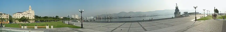 Novorossiysk (Russian: Новоросси́йск, IPA: [nəvərɐˈsʲijsk] ; Adyghe: ЦӀэмэз, romanized: C̣ămăz) is a city in Krasnodar Krai, Russia. The port of Novorossiysk is one of the largest ports on the Black Sea.[9][10] It is one of the cities designated as a Hero City by the Soviet Union. The population is 262,293 (2021 census);[11]