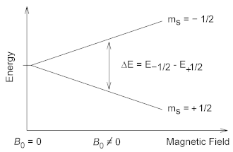 As a result, the different nuclear spin states have different energies in a non-zero magnetic field. In less formal language, we can talk about the two spin states of a spin 1/2 as being aligned either with or against the magnetic field. If γ is positive (true for most isotopes used in NMR) then m = 1/2 ("spin up") is the lower energy state.