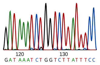 Electropherogram printout from automated sequencer for determining part of a DNA sequence