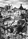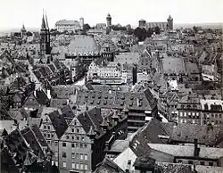 Nuremberg was a heavily fortified city that was captured in a fierce battle lasting from 17 to 20 April 1945 by the U.S. 3rd Infantry Division, 42nd Infantry Division and 45th Infantry Division, which fought house-to-house and street-by-street against determined German resistance, causing further urban devastation to the already bombed and shelled buildings.[19] Despite this intense degree of destruction, the city was rebuilt after the war and was to some extent restored to its pre-war appearance, including the reconstruction of many of its medieval buildings.[20] Much of this reconstructive work and conservation was done by the organisation 'Old Town Friends Nuremberg'. Today 25% of Nürnberg's buildings date to before World War II[21] and the old town is a declared protected area,[22] so the northeastern half of the old Imperial Free City had to be largely reconstructed.[23]