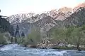 The primary occupations are agriculture, animal husbandry, and day labor. Located on the southern slopes of the Hindu Kush mountains in the northeastern part of the country, Nuristan spans the basins of the Alingar, Pech, Landai Sin, and Kunar rivers. Most of Nuristan is covered by mountainous forests and it has a rich biodiversity with a domestically unique monsoon climate by air coming from the Indian Ocean.[11] As of 2020, the entirety of Nuristan is now a protected national park.[12][13]