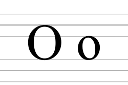 O, or o, is the fifteenth letter and the fourth vowel letter of the Latin alphabet, used in the modern English alphabet, the alphabets of other western European languages and others worldwide. Its name in English is o (pronounced /ˈoʊ/ ⓘ), plural oes.[1]