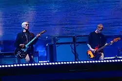 By early 2023, both Gallagher brothers expressed interest in reuniting the band if it was done on the right terms. During Liam's Definitely Maybe 30th anniversary tour in 2024, Liam reserved a seat for Noel at every gig. On 27 August 2024, almost 15 years to the date of their 2009 split, Oasis announced that they had reformed and would perform in the UK and Ireland in July and August 2025, stating: "The guns have fallen silent. The stars have aligned. The great wait is over. Come see. It will not be televised."[130][131][132] The band later also added American, Australian and Asian dates to their touring schedule in 2025.[133][134][135][136] In the original announcement, only the Gallagher brothers appeared in photos sent to the media. As time went on, however, it was revealed that three former members would also be rejoining the band: Paul "Bonehead" Arthurs, Gem Archer (both guitar) and Andy Bell (bass). Further touring musicians were later revealed, including drummer Joey Waronker and keyboardist Christian Madden (both of whom had toured with Liam), trombonist Alastair White, trumpeter Joe Auckland and saxophonist Steve Hamilton (all of whom had toured with Noel).[137][138]