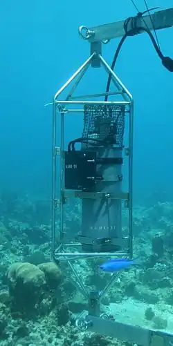 Ocean acidification is the ongoing decrease in the pH of the Earth's ocean. Between 1950 and 2020, the average pH of the ocean surface fell from approximately 8.15 to 8.05.[2] Carbon dioxide emissions from human activities are the primary cause of ocean acidification, with atmospheric carbon dioxide (CO2) levels exceeding 422 ppm (as of 2024).[3] CO2 from the atmosphere is absorbed by the oceans. This chemical reaction produces carbonic acid (H2CO3) which dissociates into a bicarbonate ion (HCO3) and a hydrogen ion (H+). The presence of free hydrogen ions (H+) lowers the pH of the ocean, increasing acidity (this does not mean that seawater is acidic yet; it is still alkaline, with a pH higher than 8). Marine calcifying organisms, such as mollusks and corals, are especially vulnerable because they rely on calcium carbonate to build shells and skeletons.[4]