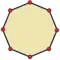A regular octagon has Schläfli symbol {8}[1] and can also be constructed as a quasiregular truncated square, t{4}, which alternates two types of edges. A truncated octagon, t{8} is a hexadecagon, {16}. A 3D analog of the octagon can be the rhombicuboctahedron with the triangular faces on it like the replaced edges, if one considers the octagon to be a truncated square.