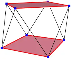A regular skew octagon is vertex-transitive with equal edge lengths. In three dimensions it is a zig-zag skew octagon and can be seen in the vertices and side edges of a square antiprism with the same D4d, [2+,8] symmetry, order 16.