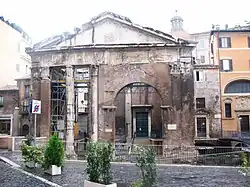Octavia died of natural causes. Suetonius says she died in Augustus' 54th year, thus 11 BC with Roman inclusive counting.[22] Her funeral was a public one, with her sons-in-law (Drusus, Ahenobarbus, Iullus Antonius, and possibly Paullus Aemillius Lepidus) carrying her to the grave in the Mausoleum of Augustus. Drusus delivered one funeral oration from the rostra and Augustus gave her the highest posthumous honors (building the Gate of Octavia and Porticus Octaviae in her memory).[23] Augustus also had the Roman senate declare his sister to be a goddess.[24] Augustus declined some other honors decreed to her by the senate, for reasons unknown.[23]