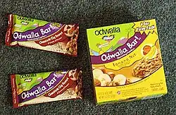 Odwalla Inc. (/oʊˈdwɔːlə/) is[2][3] an American health food company based in Dinuba, California. Founded in Santa Cruz, California in 1980 and formerly headquartered in Half Moon Bay, California from 1995 to 2013, the company's product lines included fruit juices, smoothies, soy milk, bottled water, organic beverages, and several types of energy bars known as "food bars".
