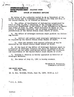 - ^ "Executive Order 9621—Termination of the Office of Strategic Services and Disposition of Its Functions". September 20, 1945 – via The American Presidency Project.