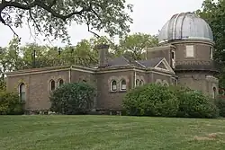Perkins Observatory is situated in Delaware on land separate to the main campus.[65] The observatory is named after Hiram Perkins, a former professor of mathematics and astronomy at the college.[66] When the observatory was built in 1931, it housed the third-largest telescope in the world, which has since been moved to Arizona.[67] The Perkins dome now houses a 32-inch (810 mm) telescope, which is the second-largest in Ohio.