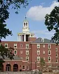 In 1905, the board of trustees decided to keep Ohio Wesleyan a college, despite the expansion of the curriculum and campus and the word "university" in the institution's name.[32] The Bachelor of Science degree was abolished, which left only the Bachelor of Arts. Two students were selected as Rhodes Scholars in 1905 and 1909.[33] Edwards Gymnasium was built in 1906.[34] In 1907, the United Societies of Phi Beta Kappa, the oldest undergraduate honor society in the United States, installed the "Eta of Ohio" ΦΒΚ chapter on campus.[35] In 1909, the school added Sanborn Hall, housing the Music Department.[36]