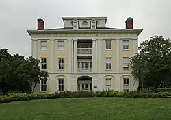 In 1841, Ohio residents Adam Poe and Charles Elliott decided to establish a university "of the highest order" in central Ohio.[10] To that end, they purchased the Mansion House Hotel, a former health resort featuring the Sulphur Spring, using funds raised from local residents.[11][12] Poe and Elliott wrote a charter emphasizing "the democratic spirit of teaching", which was approved by the Ohio State Legislature. Early in the following year they opened the college preparatory academy and formed a board of trustees.[13] Ohio Wesleyan University, named (like several other U.S. colleges and universities) after John Wesley, founder of Methodism, opened on November 13, 1844, as a Methodist-related but nonsectarian institution, with a College of Liberal Arts for male students.[14][15][16]