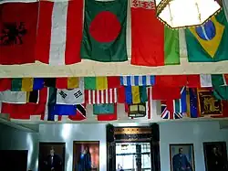 Since 1983, Ohio Wesleyan has been listed in U.S. News & World Report among colleges that attract the highest percentage of international students.[101][102][103][104] The percentage of international students grew in the early and mid-1990s.[105][106] In a study adjusted for school size, Ohio Wesleyan came ninth among 118 American colleges and universities in total aid awards to international students and 69th in average award per international student among both large universities and small liberal arts colleges.[107] South East Asian students have significantly contributed to this growth.[108] The United Nations flag, along with the flags of more than sixty represented nations and the U.S. flag, flies in University Hall in honor of the ideal of peaceful international relations.[109]