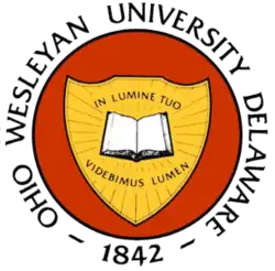 Ohio Wesleyan University (abbrevriated OWU) is a private liberal arts college in Delaware, Ohio, United States. Founded in 1842 by Methodist leaders and central Ohio residents, OWU is a member of the Ohio Five – a consortium of Ohio liberal arts colleges.[8] Its 200-acre (81 ha) campus is 27 miles (44 km) north of Columbus, Ohio and includes the main academic and residential campus, Perkins Observatory, and the Kraus Wilderness Preserve.[9]