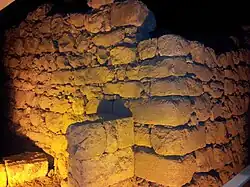 Many structures dated to the Herodian period were discovered in the Jewish Quarter during archaeological excavations carried out between 1967 and 1983. Among them was unearthed a palatial mansion from the Herodian period,[36] believed to be the residence of Annas the High Priest.[37] In its vicinity, a depiction of the Temple menorah was discovered, carved while its model still stood in the Temple, engraved in a plastered wall.[37] The palace has been destroyed during the final days of the Roman siege of 70 CE, suffering the same fate as the so-called Burnt House, a building belonging to the Kathros priestly family, which was found nearby.[38][31]