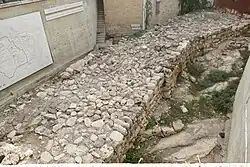 Among the Israelite period finds in the Old City are two portions of the 8th and 7th century BCE city walls, in the area of the Israelite Tower, probably including parts of a gate where numerous projectiles were found, attesting to the Babylonian sack of Jerusalem in 586 BCE.[30][31][32] Another part of the late 8th-century BCE fortification discovered was dubbed the "broad wall", after the way it was described in the Book of Nehemiah, built to defend Jerusalem against the Assyrian siege of Jerusalem of 701 BCE.[31][30][33]
