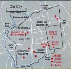 In 1967, the Old City contained 17,000 Muslims, 6,000 Christians (including Armenians) and no Jews.[11]