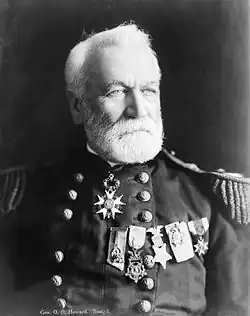 Oliver Otis Howard (November 8, 1830 – October 26, 1909) was a career United States Army officer and a Union general in the Civil War. As a brigade commander in the Army of the Potomac, Howard lost his right arm while leading his men against Confederate forces at the Battle of Fair Oaks/Seven Pines in June 1862, an action which later earned him the Medal of Honor. As a corps commander, he suffered a major defeat at Chancellorsville and his performance was of question at Gettysburg in May and July 1863.[1] However, he recovered from possible career setbacks as a successful corps and later army commander, commanding the Army of the Tennessee from July 27, 1864, until May 19, 1865, leading the army in the battles of Ezra Church, Battle of Jonesborough, Sherman's March to the Sea, and the Carolinas campaign in the Western Theater.