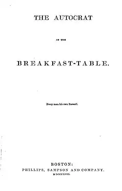 - ^ Holmes, Oliver Wendell. The Autocrat at the Breakfast-Table. Boston: Houghton, Mifflin, 1916: 7