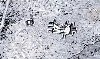 The Altis was an irregular quadrangular area more than 183 m (200 yd) on each side and walled except to the North where it was bounded by the Kronion (Mount Kronos).[6] It consisted of an arrangement of buildings, the most important of which are the Temple of Hera (or Heraion/Heraeum), the Temple of Zeus, the Pelopion, and open sites used for traditional activities, such as the area of the great altar of Zeus, where the largest sacrifices were made.[note 4]