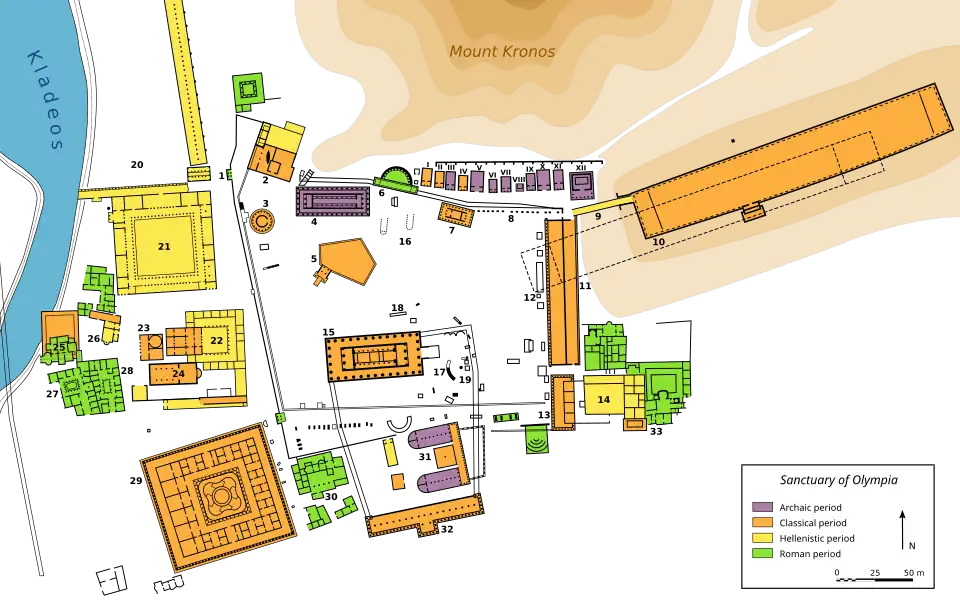 4. Temple of Hera 15. Temple of Zeus 26. Greek baths