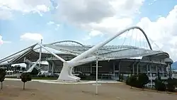 It was extensively renovated in time for the 2004 Summer Olympics and the 2004 Summer Paralympics, including a roof designed by Santiago Calatrava, and innovatively positioned with Enerpac hydraulics.[5] The roof was added atop the sidelines and completed just in time for the opening of the Games. The stadium was then officially re-opened on 30 July 2004. It hosted the athletics events and the football finals at the Olympics and the athletics at the Paralympics.[6] It also hosted the opening ceremony on 13 August 2004, and the closing ceremony on 29 August 2004 along the Paralympics ceremonies on 17 and 28 September.