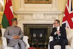 Oman is an absolute monarchy ruled by a Sultan, with power passed down through the male line. Qaboos bin Said served as sultan from 1970 until his death in 2020. His reign saw a rise in the country's living standards, the abolition of slavery, the end of the Dhofar Rebellion, and the promulgation of Oman's constitution.[19] In 2020, Haitham bin Tariq succeeded Qaboos as the Sultan of Oman.[20] Oman is a member of the United Nations, the Arab League, the Gulf Cooperation Council, the Non-Aligned Movement, and the Organisation of Islamic Cooperation.