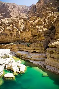 The city or region is commonly etymologised in Arabic as deriving from ʿāmin or ʿamūn, meaning 'settled' people, in contrast to the nomadic Bedouins.[24] While some theories propose an eponymous founder—such as Oman bin Ibrahim al-Khalil, Oman bin Siba' bin Yaghthan bin Ibrahim, and Oman bin Qahtan—others suggest that "Oman" originates from a valley in Ma'rib, Yemen. This valley is presumed to be the ancestral homeland of the Azd, an ancient Bedouin tribe mentioned in pre-Islamic inscriptions, particularly in Sabaic inscriptions from the reign of Sha'r Awtar (210–230 CE).[25]