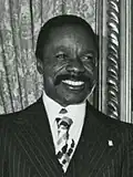 In addition to the presidency, Bongo held several ministerial portfolios from 1967 onward, including Minister of National Defense (1965–1981),[18] Information (1967–1980), Planning (1967–1977), Prime Minister (1967–1975), the Interior (1967–1970), and many others. Following a Congress of the PDG in January 1979 and the December 1979 elections, Bongo gave up some of his ministerial portfolios[19] and surrendered his functions as head of government to Prime Minister Mebiame. The PDG congress had criticized Bongo's administration for inefficiency and called for an end to the holding of multiple offices. Bongo was again re-elected for a seven-year term in 1979, receiving 99.96% of the popular vote.[19] In the autumn of that same year, Robert Luong, a lover of Bongo's wife, was assassinated by barbouze mercenaries in Villeneuve-sur-Lot, France.[10][5]