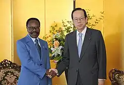 Bongo's government received strong diplomatic, financial and military backing from its former coloniser France (tied to the presence of French oil giant Elf and subsequently Total in the country).[5][6] He was criticised for in effect having worked for himself, his family and local elites and not for Gabon and its people despite an oil-led GDP per capita growth to one of the highest levels in Africa. Press freedom was curtailed by the regime, which typically banned news outlets critical of Bongo or his entourage.[7] He is also suspected to have been involved in assassinations including those of Ndouna Dépénaud, Joseph Rendjambé and (in France) Robert Luong.[5][8][9][10] After Bongo's death in June 2009, his son Ali Bongo, who had long been assigned key ministerial responsibilities by his father, was elected to succeed him in August of that year, serving until he was overthrown by his cousin in 2023.
