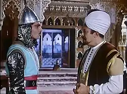 Sharif went on to star in another Hollywood film, Anthony Mann's The Fall of the Roman Empire (1964) where he played the support role of Sohaemus of Armenia. Sharif was third-billed in Columbia's Behold a Pale Horse (1964), playing a priest in the Spanish Civil War alongside Gregory Peck and Anthony Quinn. Director Fred Zinnemann said he chose Sharif partly on the suggestion of David Lean. "He said he was an absolutely marvellous actor, 'If you possibly can, take a look at him.'"[39] Film historian Richard Schickel wrote that Sharif gave a "truly wonderful performance", especially noteworthy because of his totally different role in Lawrence of Arabia: "It is hard to believe that the priest and the sheik are played by the same man".[40] The film, like Fall of the Roman Empire, was a commercial disappointment.[41]