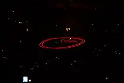 "One" made its live debut on 29 February 1992 in Lakeland, Florida on the opening night of the Zoo TV Tour,[40] and it was played at every subsequent show on U2's concert tours until the first show of the Innocence + Experience Tour in Vancouver, where it was not played for the first time in its history. However, the song returned for the following concert, when it was used as the show closer.[41] Zoo TV performances were accompanied by footage from the second music video being displayed on the stage's video screens, with David Wojnarowicz's "Falling Buffalo" photograph appearing at the end of the song.[42]