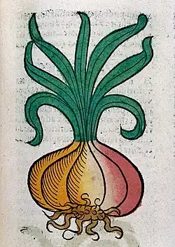 Medieval woodcut print of an onion, from Hortus Sanitatis (1547)