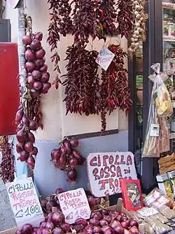 Cepa is commonly accepted as Latin for "onion"; the generic name Allium is the classical Latin name for garlic.[16] It has an affinity with Spanish: cebolla, Italian: cipolla, Polish: cebula, and the German Zwiebel (this last altered by folk etymology). The English word "chive" is from the Old French chive , in turn from cepa.[17]